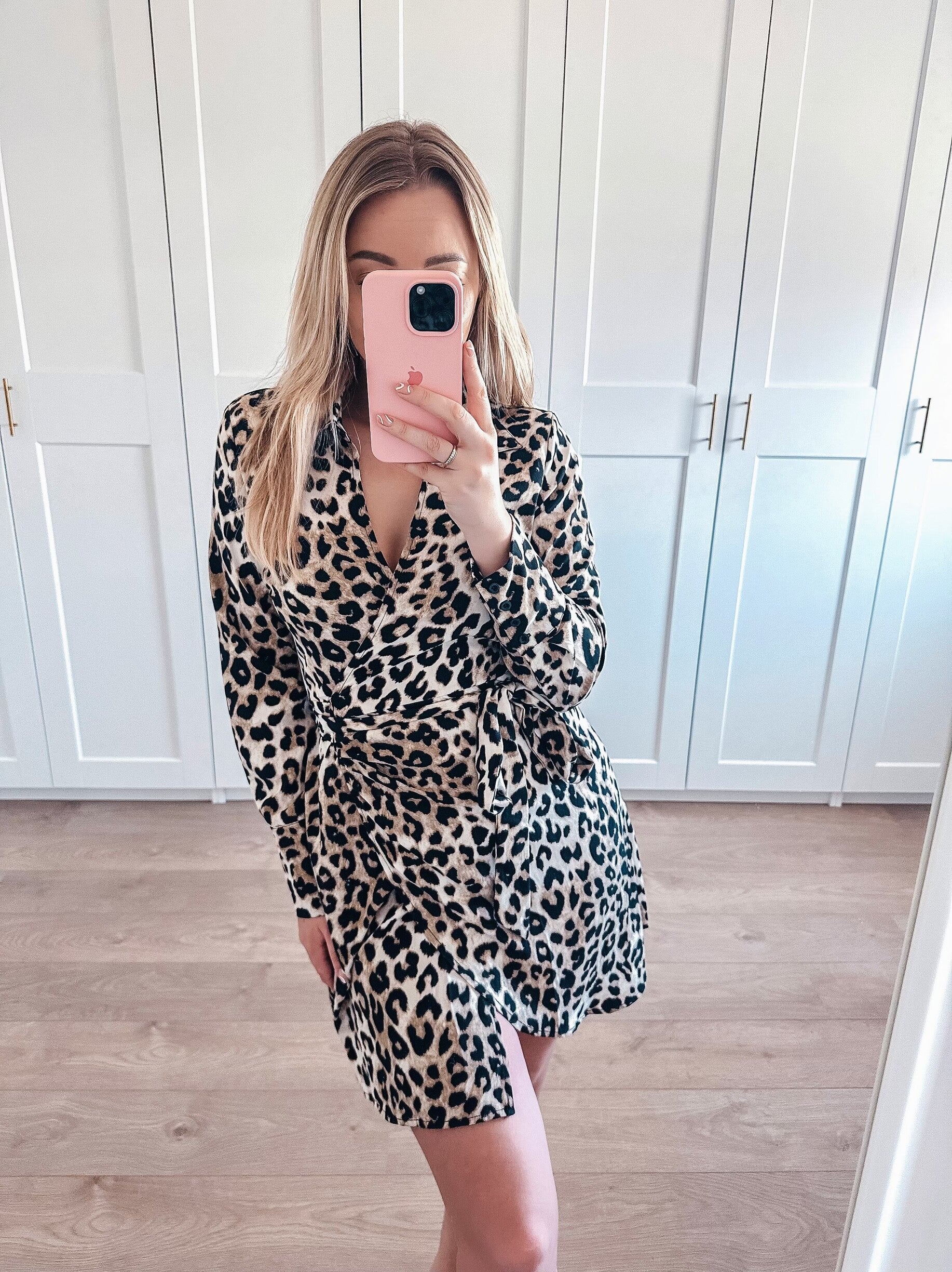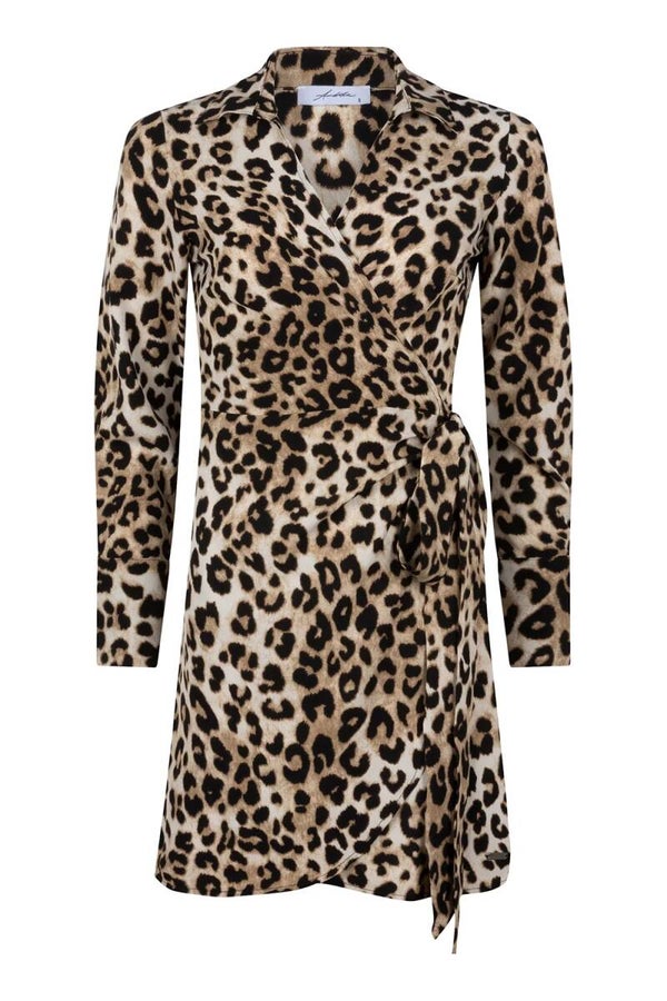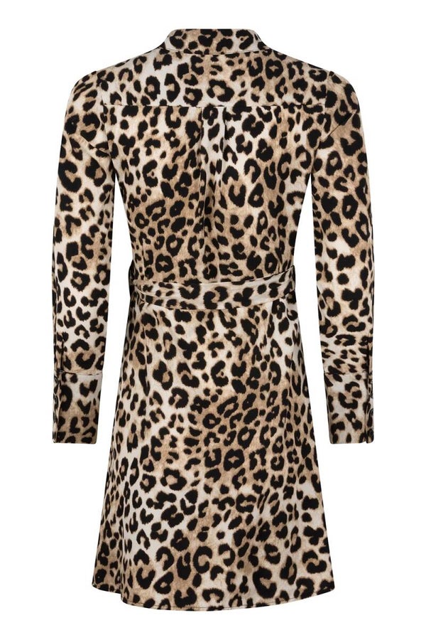 Mooie jurk van Ambika. De jurk heeft een klassieke kraag, een overslag met een strik ceintuur, een blinde drukknoopsluiting en lange mouwen met manchetten.