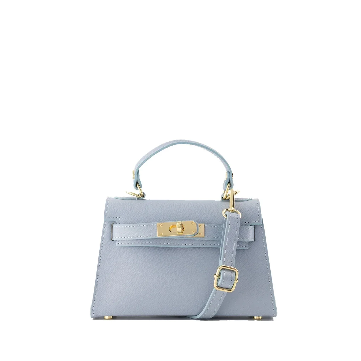 De handtas Alice is gemaakt van echt leer. De tas heeft op de voorkant een draaisluiting en is afgewerkt met goudkleurige hardware. Dankzij de afneembare en verstelbare hengsels kan de tas ook als crossbody gedragen worden.
