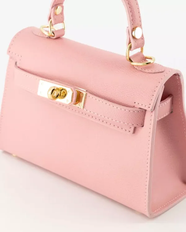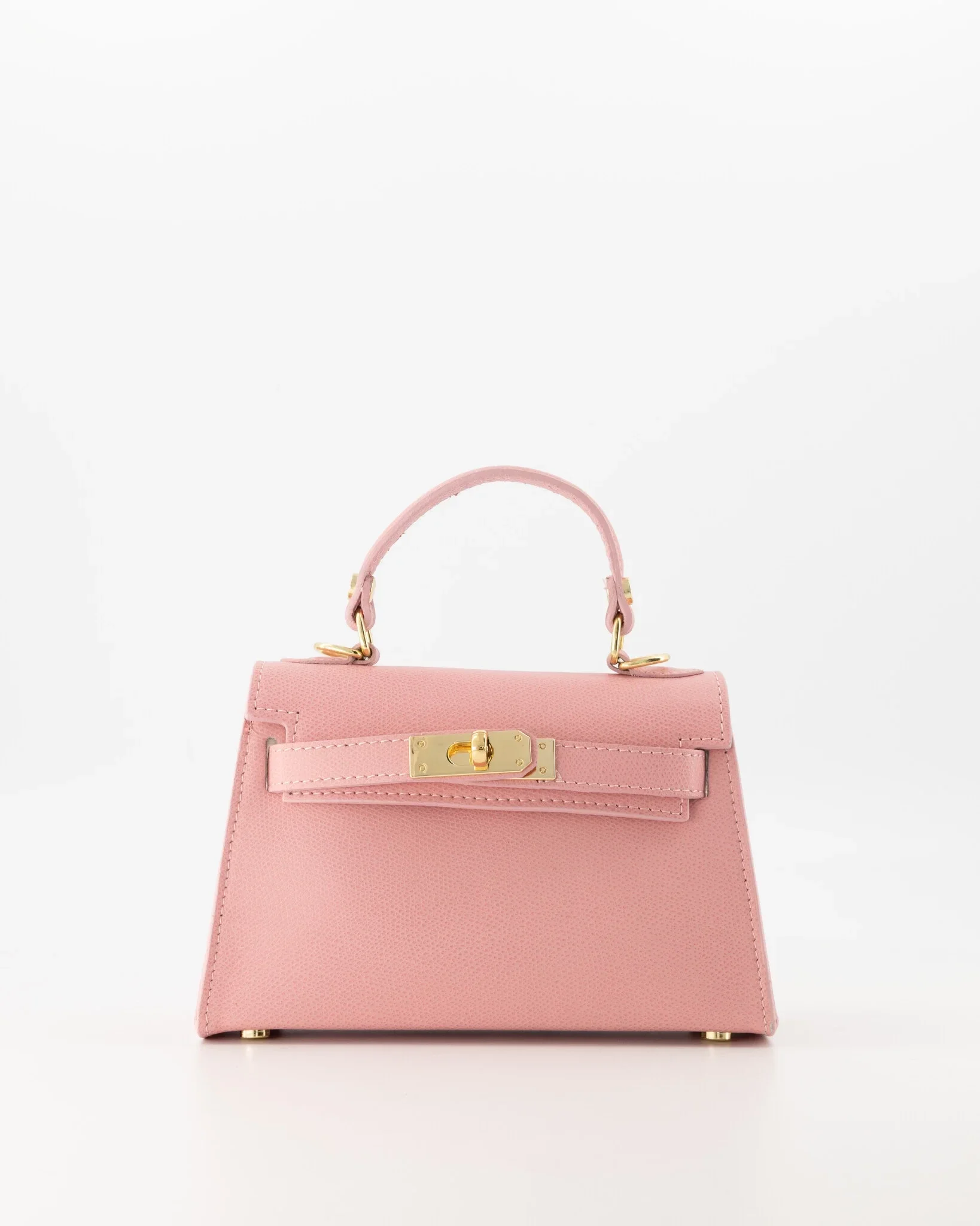 De handtas Alice is gemaakt van echt leer. De tas heeft op de voorkant een draaisluiting en is afgewerkt met goudkleurige hardware. Dankzij de afneembare en verstelbare hengsels kan de tas ook als crossbody gedragen worden.