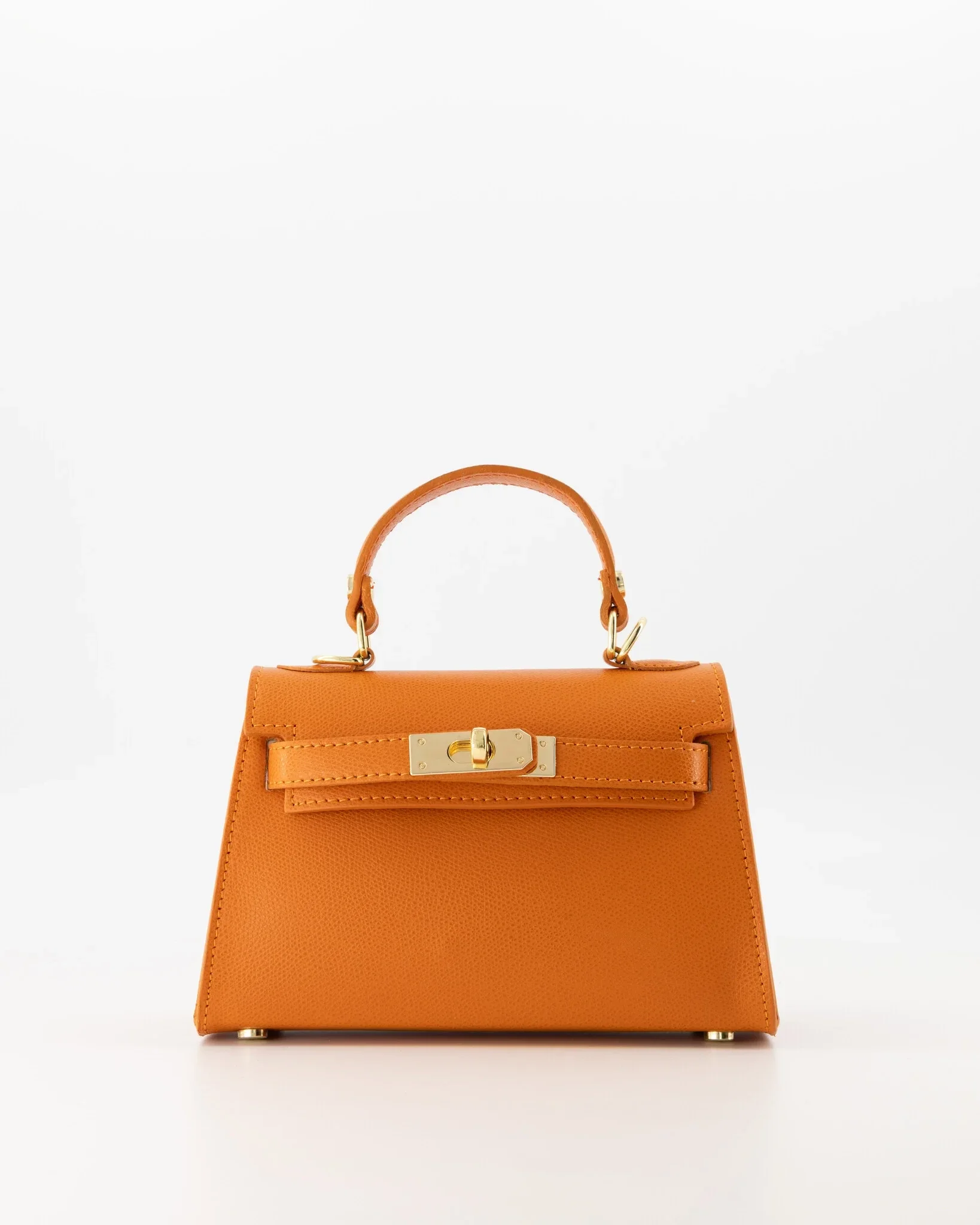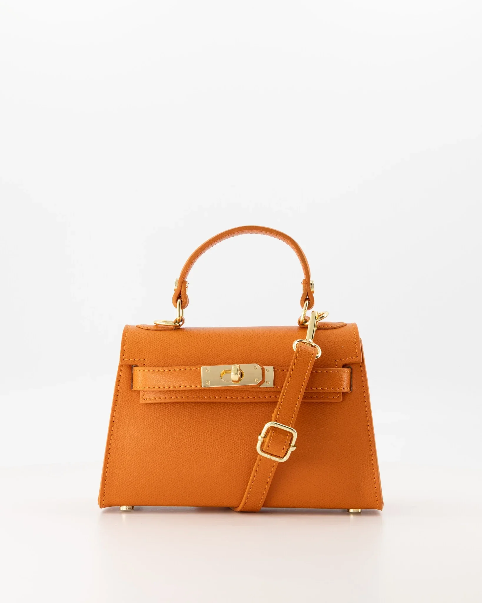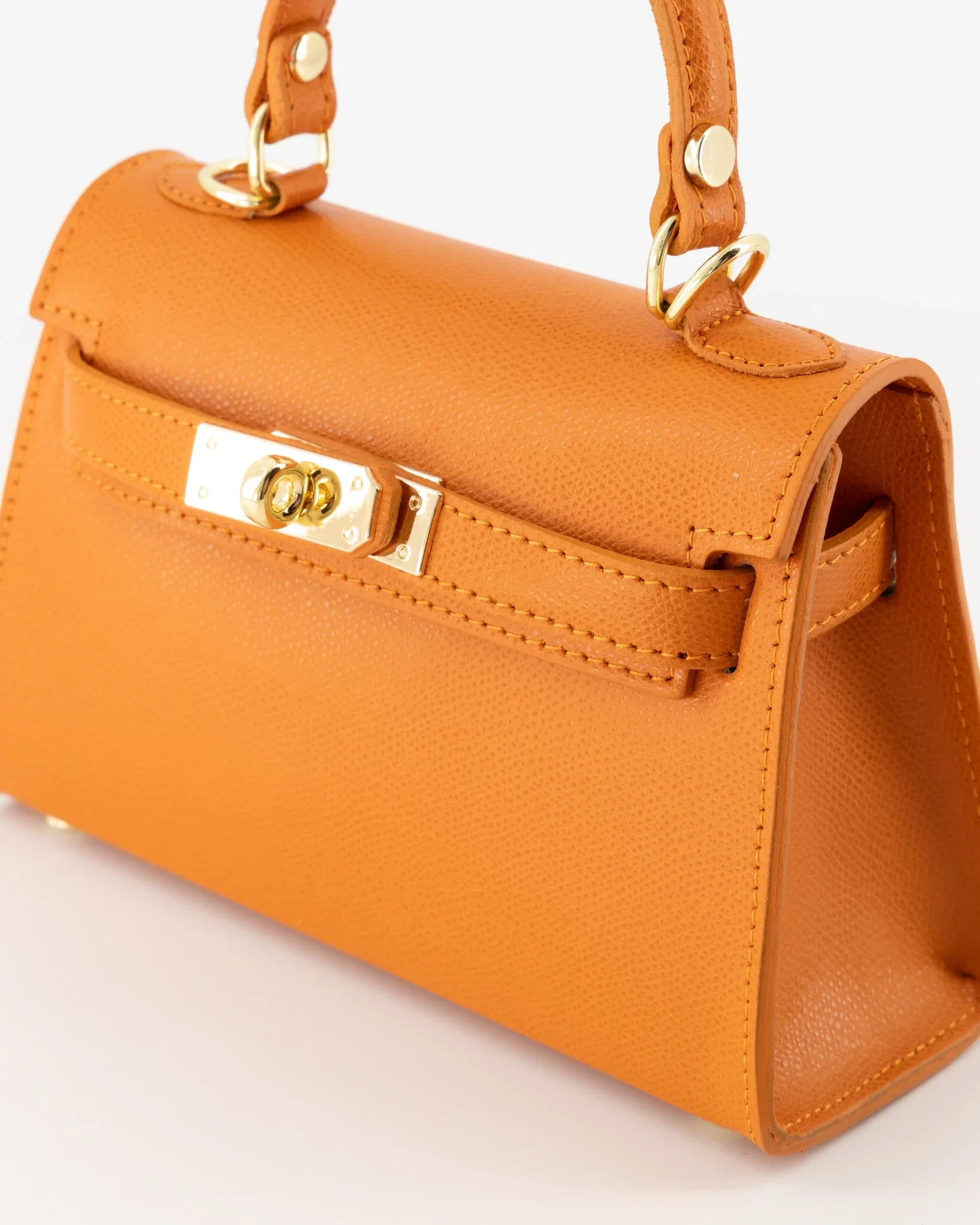 De handtas Alice is gemaakt van echt leer. De tas heeft op de voorkant een draaisluiting en is afgewerkt met goudkleurige hardware. Dankzij de afneembare en verstelbare hengsels kan de tas ook als crossbody gedragen worden.