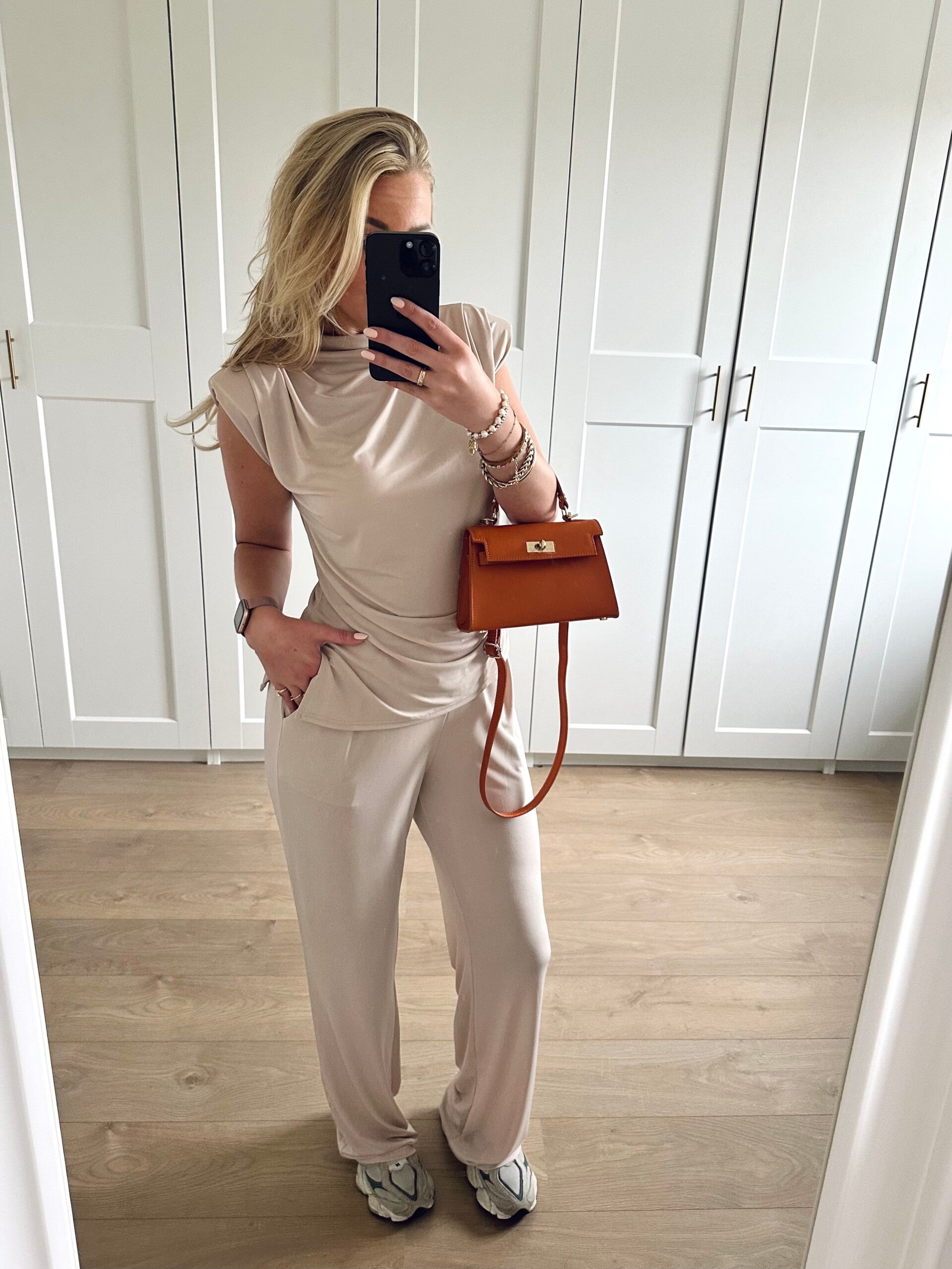 Fijne comfy set bestaande uit een top en broek van stretchy materiaal.