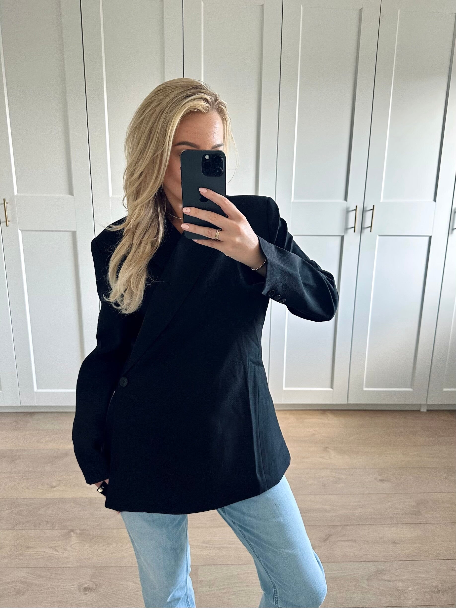 Hoe leuk is deze nieuwe oversized 'double breasted blazer'. Dankzij de langere fit kun je hem zowel als jurk dragen met een paar hoge laarzen, of combineren met een pantalon of jeans voor een stijlvolle everyday look. De blazer heeft een 'double-breasted' model met knoopsluiting, een strakke kraag en een licht getailleerde pasvorm die je silhouet mooi benadrukt.
