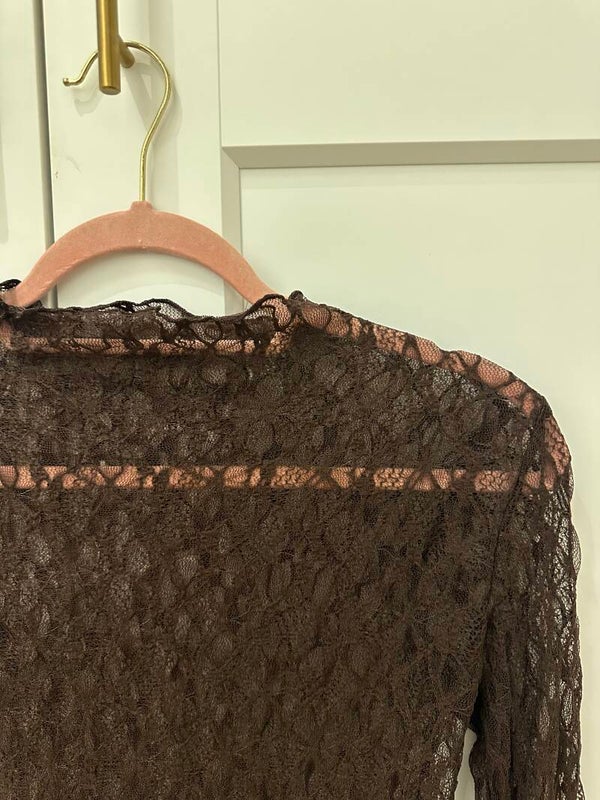 Onze kanten flare top heeft een flatterende pasvorm en subtiele transparantie. Leuk voor een everyday look of perfect te dragen onder een trui of blazer door de leuke flare mouwen.