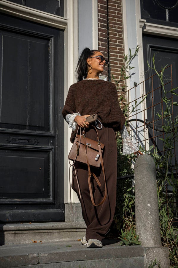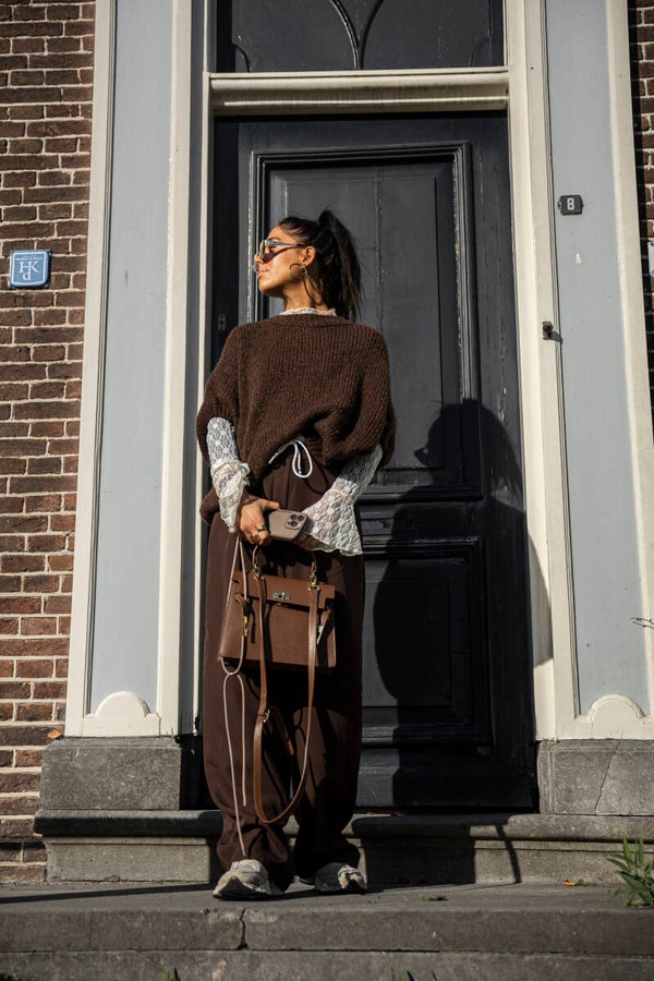 Gebreide trui met driekwart mouw - bruin