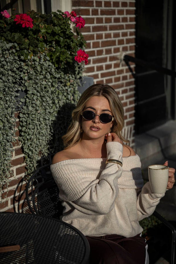 Off shoulder trui van zacht materiaal. De brede kraag valt subtiel over de schouders terwijl de gebreide textuur zorgt voor fijne comfort.