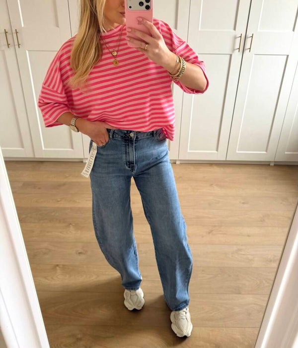 Model op de foto is 1,68 cm en draagt maat L.