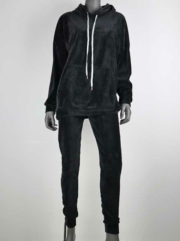 Comfy pak in zachte velour kwaliteit met hoodie top en rechte broek.